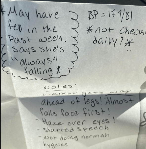 Notes from Medical Sitter – April 3, 2022 – reported findings to facility